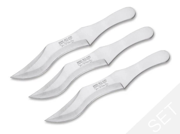 Boker Bailey Mini Bo-Kri Set Fixed Blade Knife Silver Stainless Steel Handle 420J2 Plain Edge 02MB162