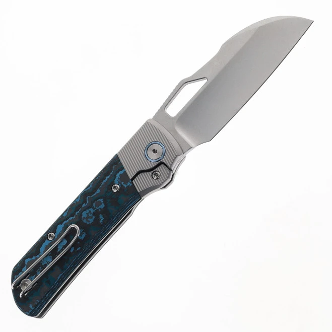 Divo Knives Stout V2 Arctic Blue Fatcarbon & Titanium Handle Stonewashed Vanax Blade Steel